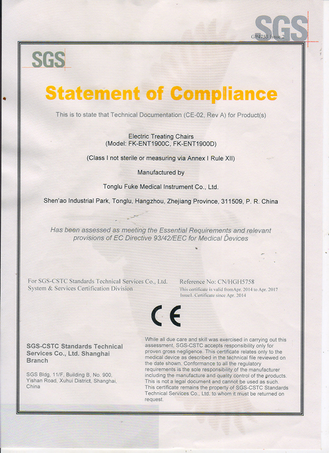 CE Certification for Electric Treating Chairs